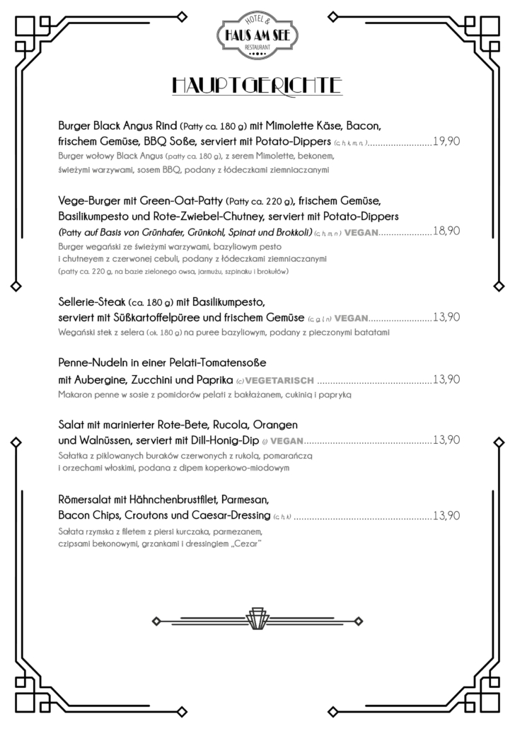 Erleben und genießen Sie unsere Speisen, Menüs und Arrangements. Wir bieten Ihnen deutsche Küche mit regionalen Spezialitäten. Wir bieten auch anregende thematische Abende rund um das Abendessen. Alle unsere Gerichte werden stets frisch für Sie zubereitet.